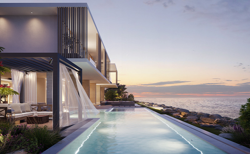 Embracing a commitment to sustainability, the island’s architecture prioritises the use of natural materials and organic design techniques. From locally sourced stone to sustainably harvested wood, each villa blends eco-conscious elements with innovative features such as energy efficient appliances, intelligent monitoring systems, and solar-powered amenities.