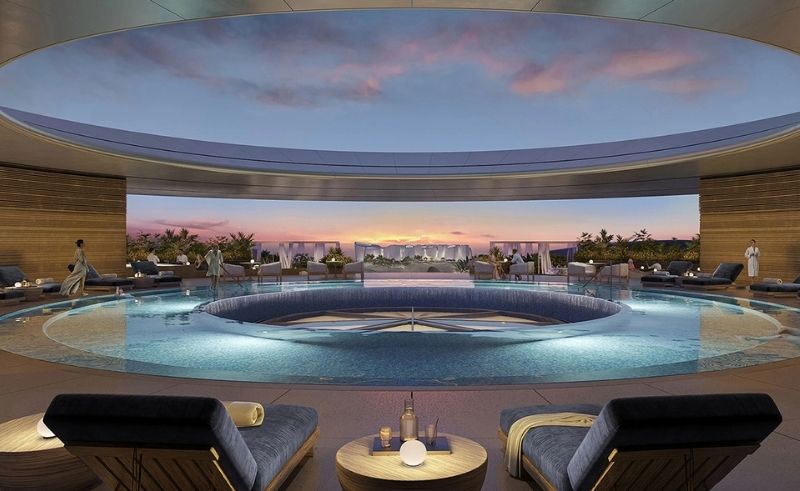 This is wellness at full volume. A subterranean spa grotto hides beneath the open air, magnesium pools glint like liquid gold, and hyperbaric chambers hum quietly with regeneration. Every room, every suite, even the penthouses, are calibrated for sleep, recovery, and presence—a quiet luxury that doesn’t shout but asks you to notice.